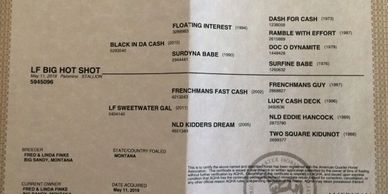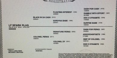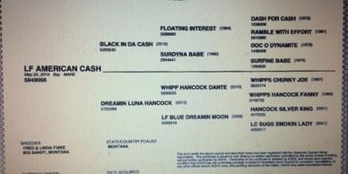 Here is a very nice good-looking son of Black in Da Cash. He is tall, dark, and handsome, and bred for speed, just like his daddy. This colts’ dam is one of our sweetest mares who always raises a good colt. LF SPARK PLUG could mature at 16 HH, so you will get noticed at your neighbor’s branding or when you take him to the arena. He has a good pedigree with Dash for Cash, Doc O dynamite, Signature Perks, and Snip of Colonel.