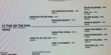 Wow, a black son of Hancock Silver King. This colt, LF FUN ON THE RUN, is big, deep cinching, and has a huge hip. He has a big motor. The Hancock Silver King colts have a lot of speed. His mother is a good producer for us, as she had the high selling colt a few years back. This is a nice good-looking colt with a solid pedigree.