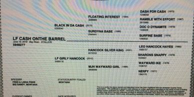 WOW! This colt is really going to be special… He has a powerful hip, strong shoulders, and great foot and bone. Plus, he will be around 16HH and a roan to boot! LF CASH ON THE BARREL is the type of horse everyone notices. His sire has topped our sale four years in a row. His dam is the producer of our high selling filly last year. He will have a lot of speed to go along with his size and good looks.