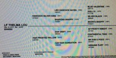 Here is a beautiful daughter of Hancock Silver King out of a Sun Frost bred Mare. This filly will be big and she will really ride. She is the kind that will go all day long in the big country. LF THELMA LOU is the last daughter of Hancock Silver King we will be offering for sale. We know these mares grow up to be great saddle horses and awesome broodmares. We have kept a pile of them at home for ourselves. We have built our program around them.